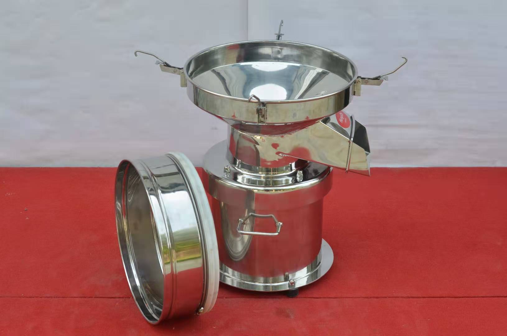 450型超靜音篩分過濾機適用于各行業生產廠家單層篩分和過濾用,處理生產量不多或雜雜質少的物料,在食品、醫 藥、化工、冶金、磨料、陶瓷、涂料、金剛石、礦業等行業應用中。450型過濾篩分機網孔不堵塞,粉末不飛揚??珊Y至400目。不銹鋼(304)材質,機型小巧,重量輕,可任意移動,不占空間。