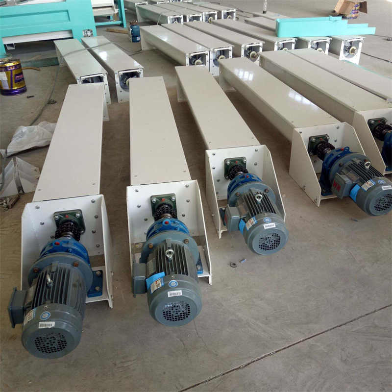 LS型螺旋輸送機結構特征,一臺螺旋輸送機通常由本體、進出裝置、驅動裝置三大部分組成。本體由首節、中間節、尾節三種組成。在首節內裝有支推軸承承受軸向力,在中間節和尾節內裝有用軸承支承螺旋軸,此外,在尾節內還裝有可軸向移動的徑向軸承以補償螺旋軸長度的誤差和適應溫度的變化。各螺旋軸之間采用法蘭式聯接,提高聯接軸的互換性,便于維修。