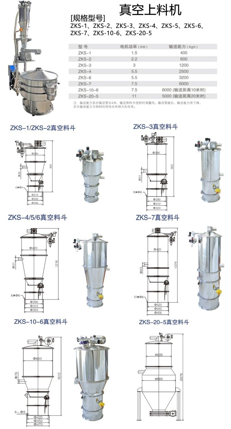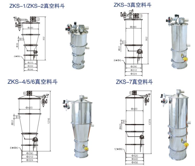 ZKS系列真空上料又稱真空輸送機,是通過氣體產生真空輸送粉體料的設備,是氣體輸送的一種。